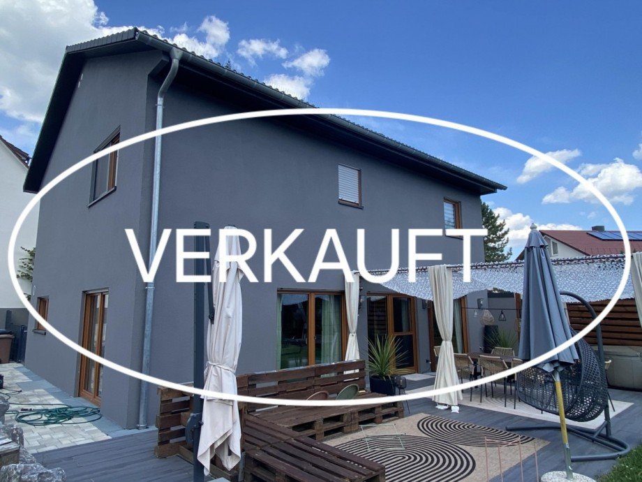 Sparen Sie sich die Zeit und Mühe eines Neubaus und ziehen Sie einfach hier ein. Hier bietet sich die seltene Gelegenheit, auf einem großen Grundstück in stadtnaher Lage, in ein neuwertiges und energiesparendes Einfamilienhaus einzuziehen. Das im Jahr ca. 2021 erbaute und voll unterkellerte Fertighaus der Firma Streif, bietet Ihnen mit einer Wohnfläche von insgesamt ca. 168 m² Platz für die ganze Familie. Verteilt auf zwei Etagen mit 6 Zimmern und 3 Bädern, findet jedes Familienmitglied seinen Rückzugsort und Lieblingsplatz im Haus. Nach Eintritt befindet sich rechter Hand sowohl der Abgang in den Keller, mit großem Hobbyraum und Sauna, als auch das Gästezimmer des Hauses. Linker Hand ist das kleine Gästebad mit Toilette und Dusche untergebracht. Geradeaus kommen Sie über den langen Flur in den lichtdurchfluteten Essbereich mit offener Küche und angrenzendem Wohnzimmer. Die neuwertige Küche mit hochwertigen Elektrogeräten und Kochinsel ist bereits im Preis inbegriffen. Von hier aus können Sie bereits einen ersten Blick auf die Süden angelegte Sonnenterrasse und den großzügigen Garten erhaschen. Durch eine Schranktüre der Küche gelangen Sie in die Speisekammer, welche ebenfalls als Schleuse zur angrenzenden Doppelgarage dient, so dass Sie trockenen Fußes Ihre Einkäufe direkt ins Haus bringen können. Ein geradläufige Holztreppe bringt Sie vom Wohnzimmer ins Obergeschoss des Hauses, welches auf der einen Seite die drei Kinderzimmer mit jeweils ca. 13 m² und das separate Kinderbad mit Dusche beherbergt. Auf der anderen Seite befinden sich das Schlafzimmer mit angrenzender Ankleide und direktem Zugang zum Tageslichtbad mit freistehender Wanne und Dusche. Alle Badezimmer und der Essbereich im Erdgeschoss werden über eine Fußbodenheizung erwärmt, alle andern Räume des Hauses werden über durch Warmluftschächte der Luft - Luft - Wärmepumpe beheizt. Neben der angebauten Doppelgarage gibt es noch Stellplätze für 3 weitere Fahrzeuge, sowie einen großen Stellplatz auf der Ostseite für ein Wohnmobil.